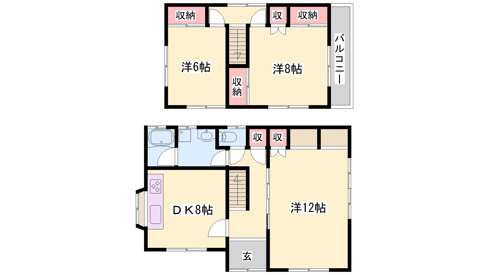 - DK8帖、洋室12帖、洋室8帖、洋室6帖