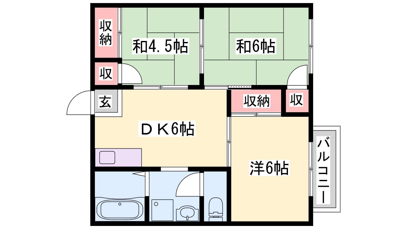 - DK6帖、洋室6帖、和室6帖、和室4.5帖
