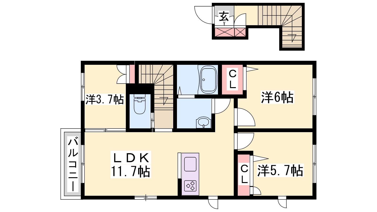 - LDK11.7帖、洋室6帖、洋室5.7帖、洋室3.7帖