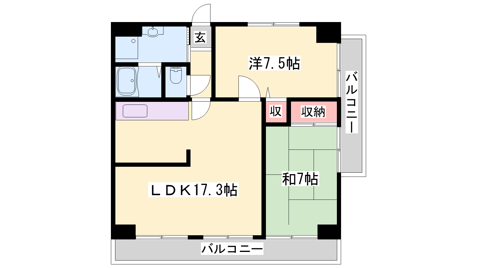 - LDK17.3帖、洋室7.5帖、和室7帖