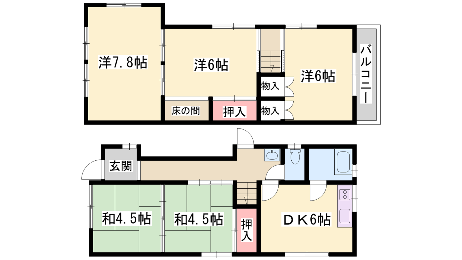 - DK6帖、和室4.5帖、和室4.5帖、洋室7.8帖、洋室6帖、洋室6帖