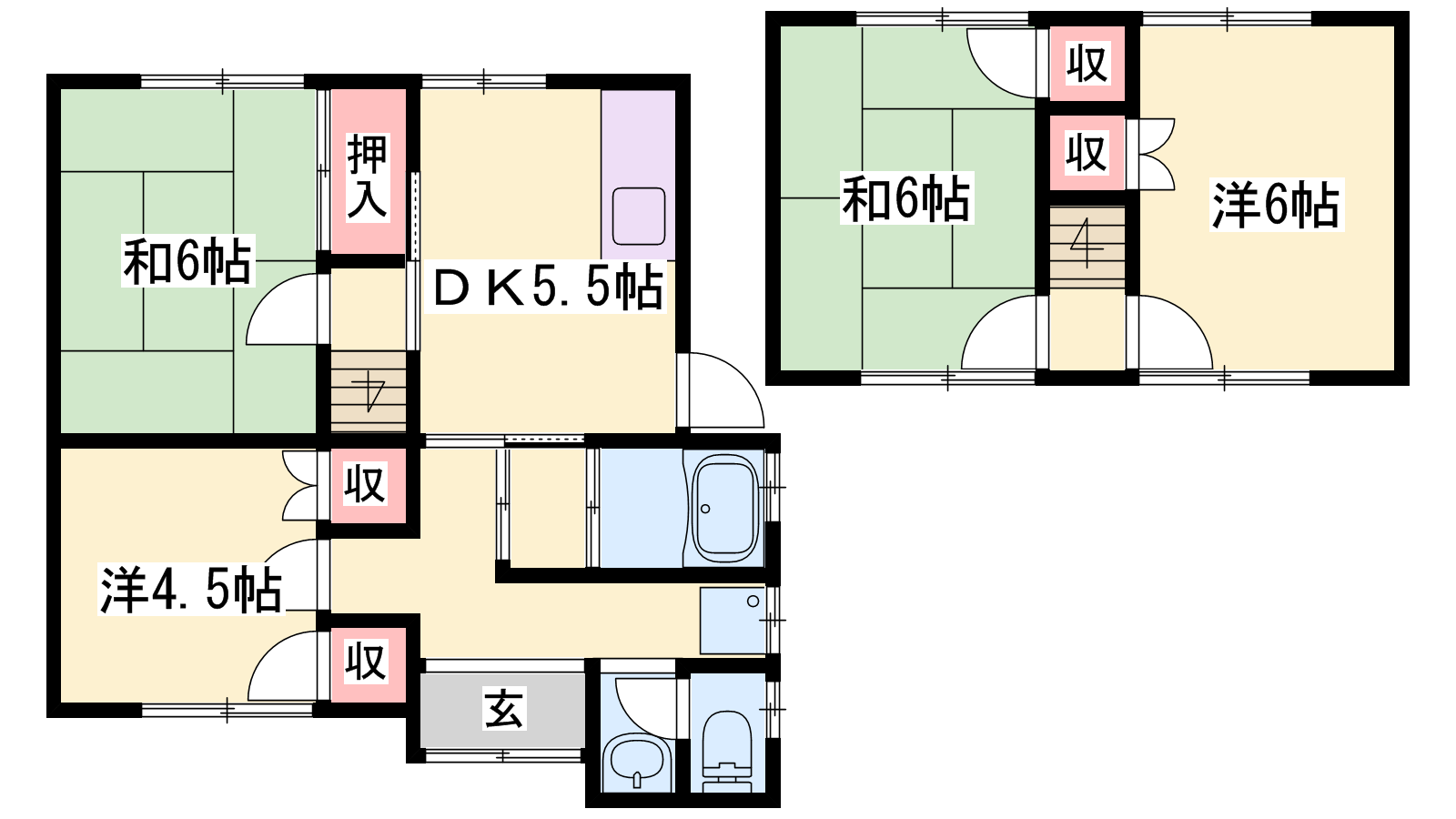 - DK5.5帖、洋室6帖、和室4.5帖、和室6帖、和室6帖