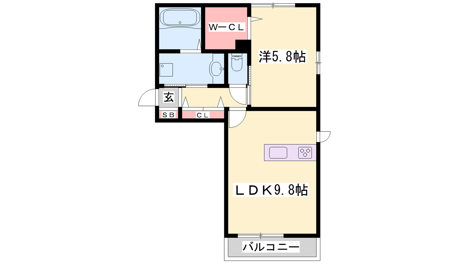 - LDK9.8帖、洋室5.8帖