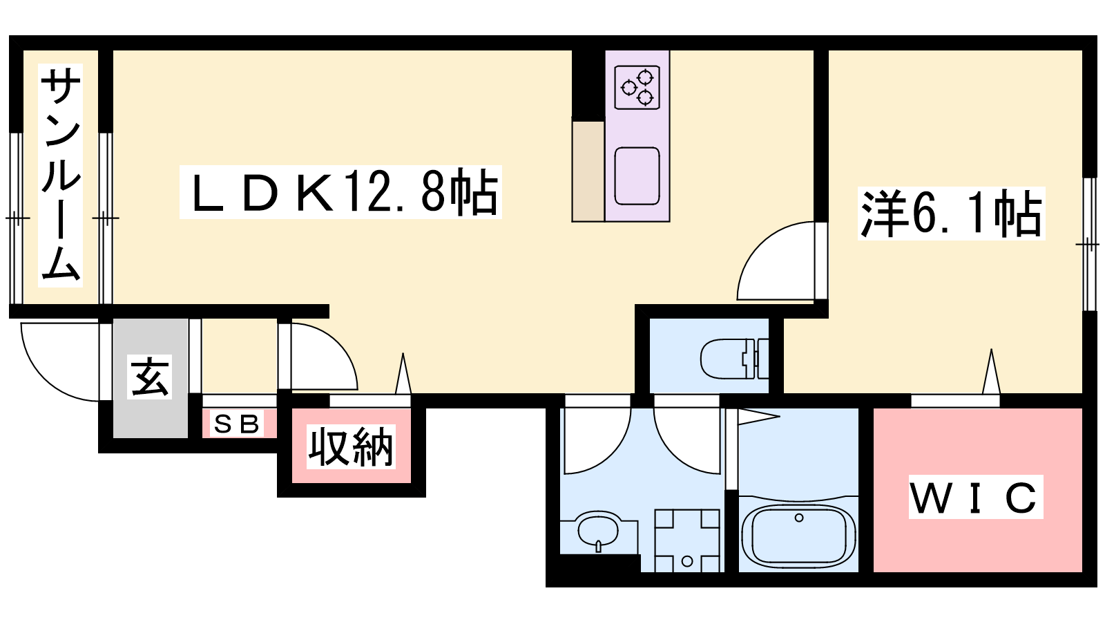 - LDK12.8帖、洋室6.1帖