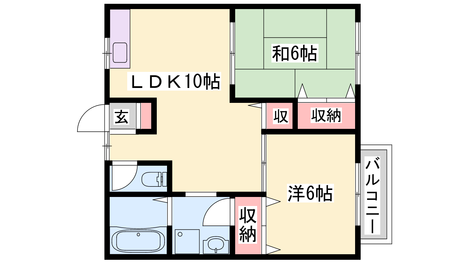 - LDK10帖、洋室6帖、和室6帖