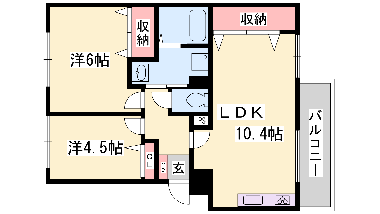 - LDK10.4帖、洋室6帖、洋室4.5帖