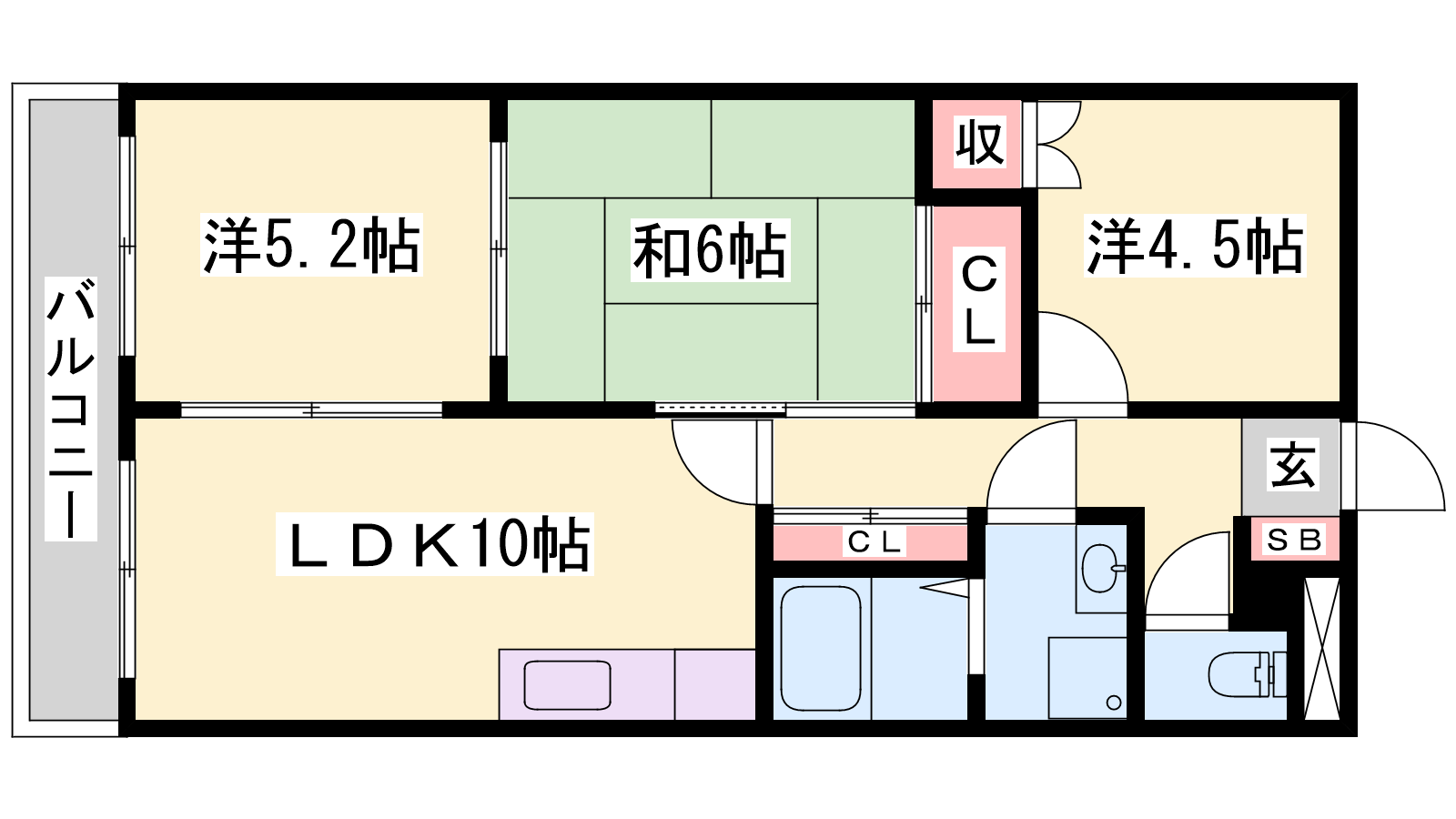 - LDK10帖、和室6帖、洋室5.2帖、洋室4.5帖