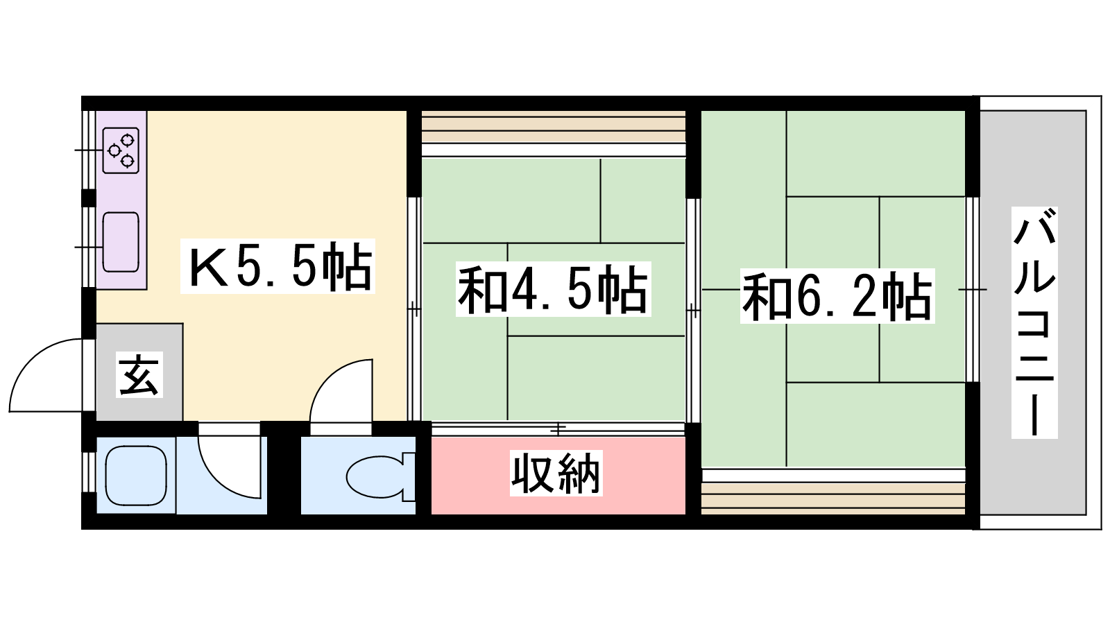 - K5.5帖、和室4.5帖、和室6.2帖