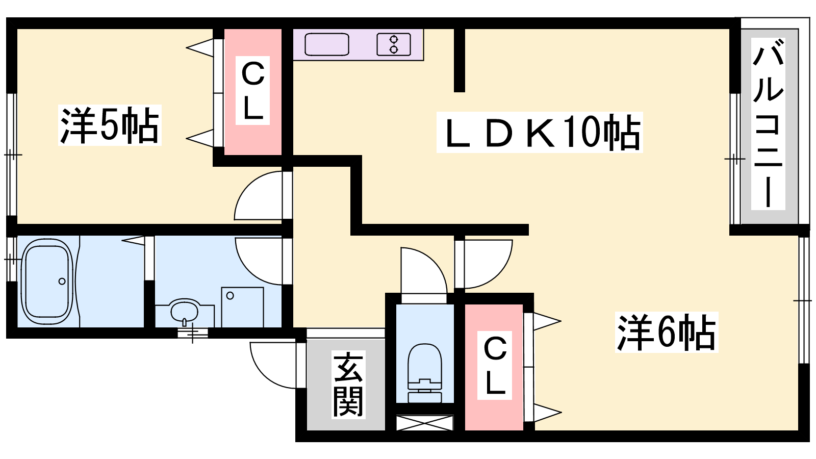 - LDK10帖、洋室6帖、洋室5帖