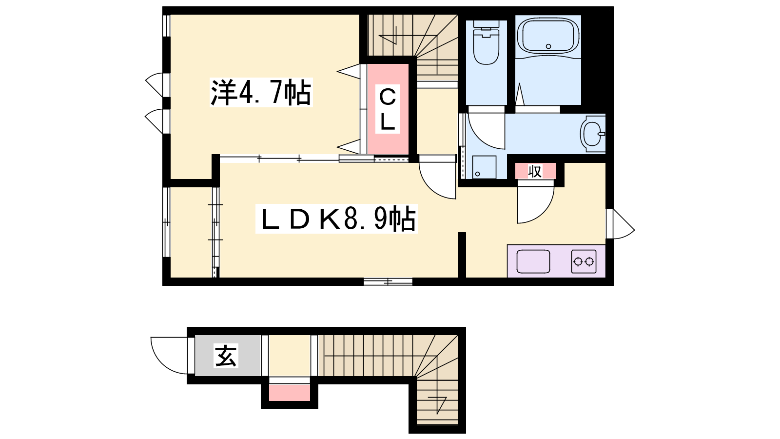 - LDK8.9帖、洋室4.7帖