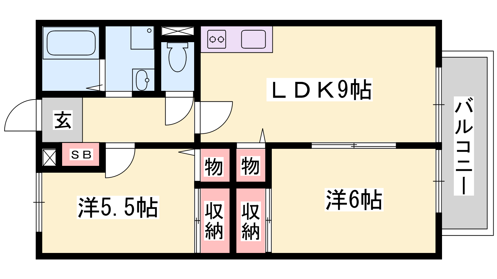 - LDK8帖、洋室6帖、洋室5.5帖