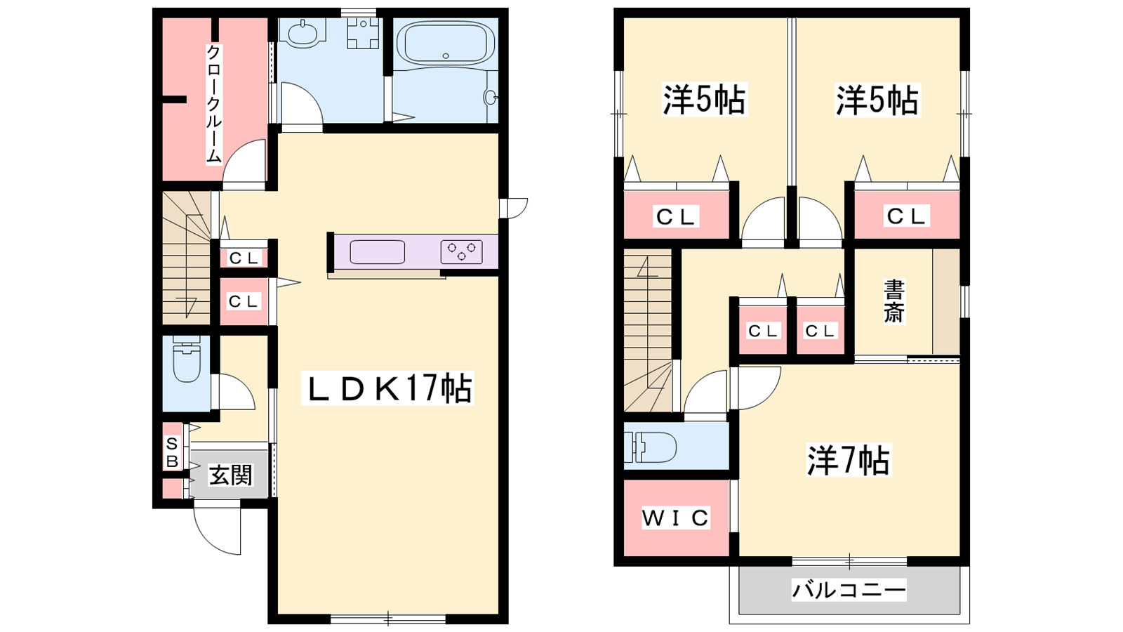 - LDK17帖、洋室7帖、洋室5帖、S5帖