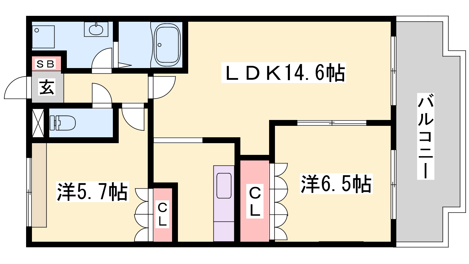 - LDK14.6帖、洋室6.5帖、洋室5.7帖