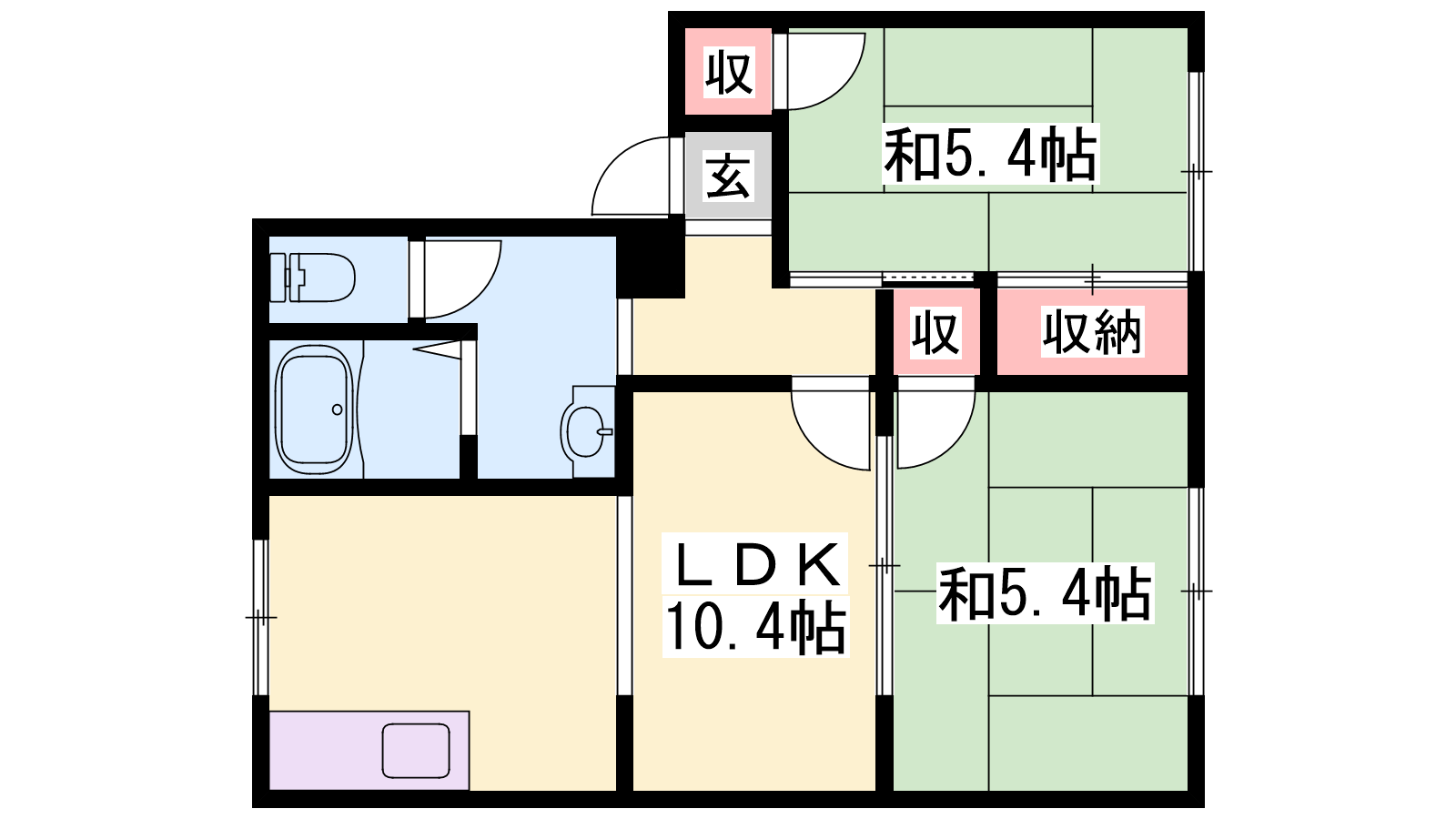 - LDK10.4帖、和室5.4帖、和室5.4帖