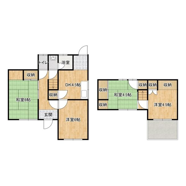 - DK4.5帖、洋室6帖、和室6帖、洋室4.5帖、和室4.5帖