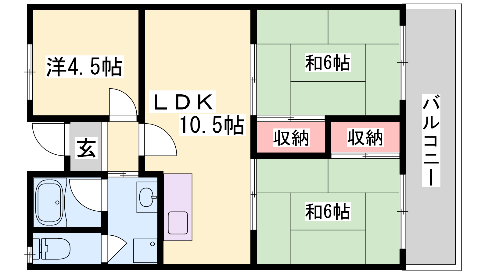 - LDK10.5帖、洋室4.5帖、和室6帖、和室6帖
