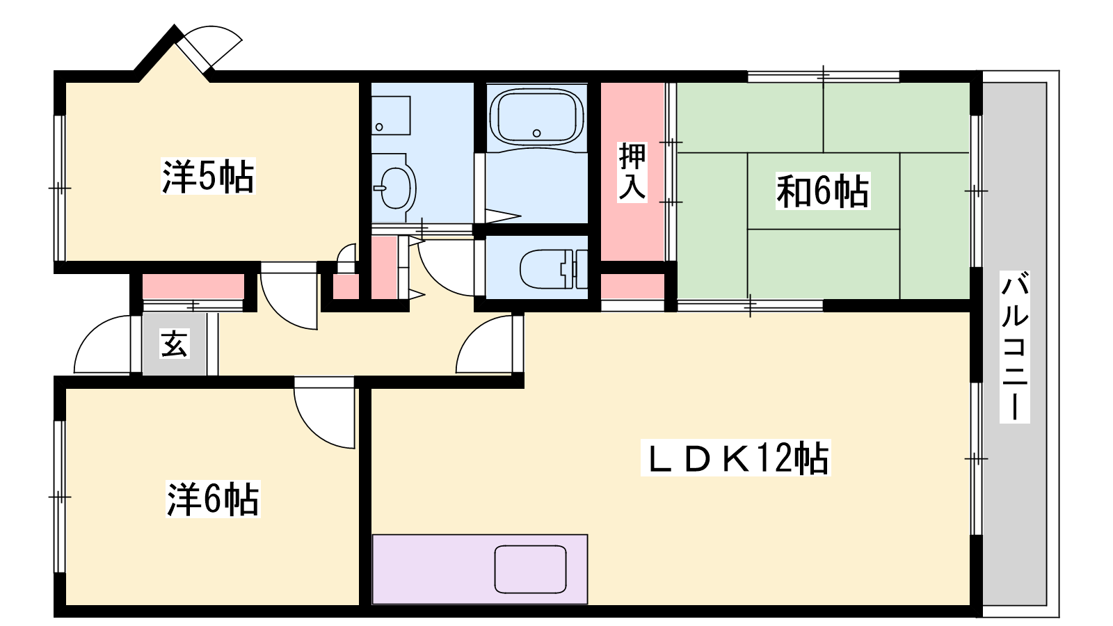 - LDK12帖、洋室6帖、洋室5帖、和室6帖
