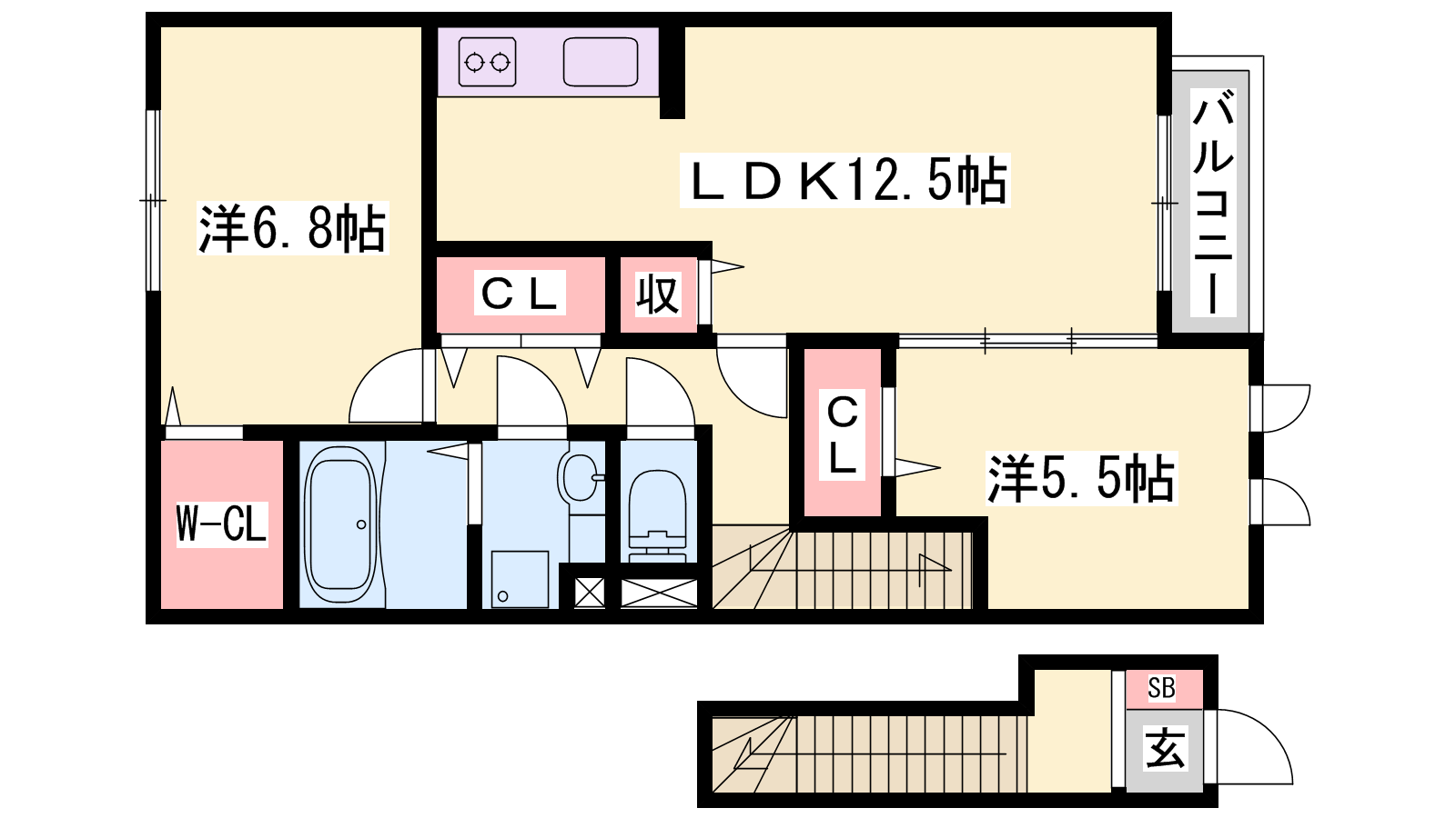 - LDK12.5帖、洋室6.8帖、洋室5.5帖