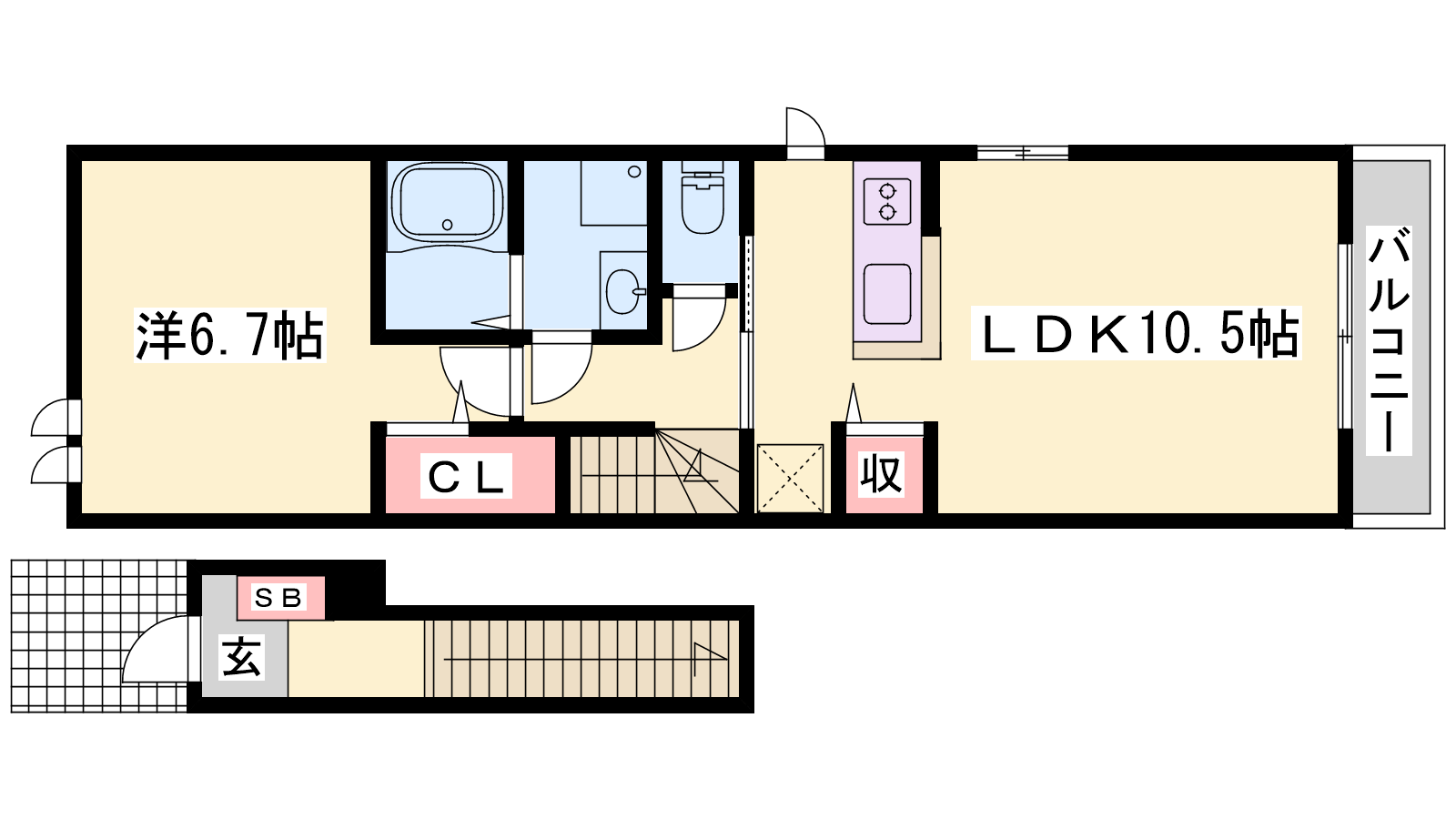 - LDK10.5帖、洋室6.7帖