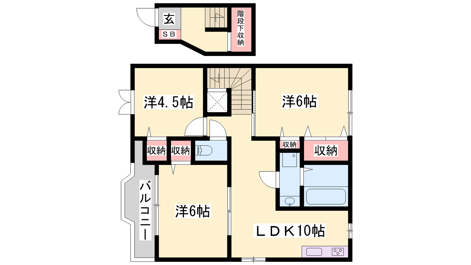 - LDK10帖、洋室6帖、洋室6帖、洋室4.5帖