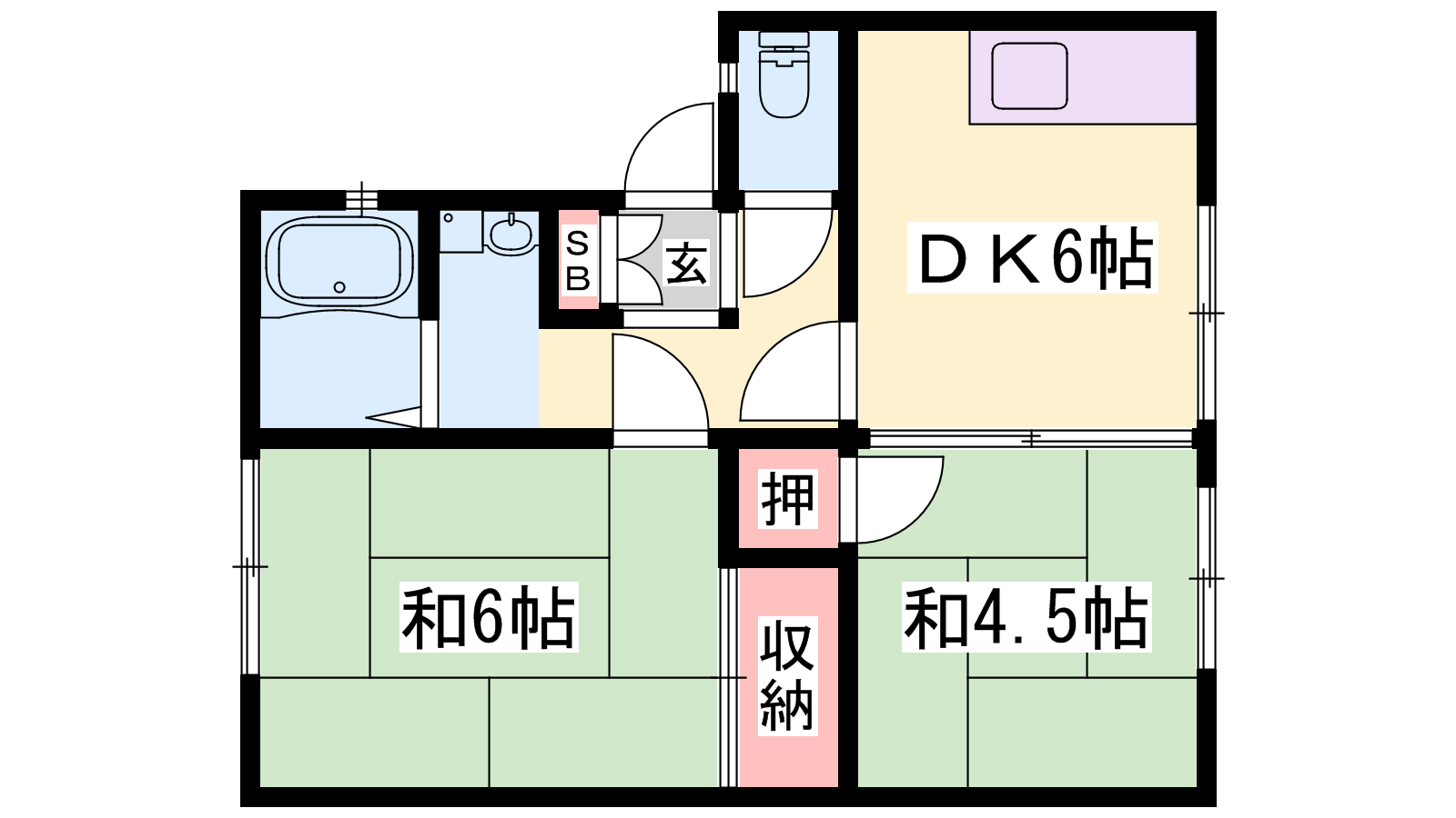 - DK6帖、和室6帖、和室4.5帖