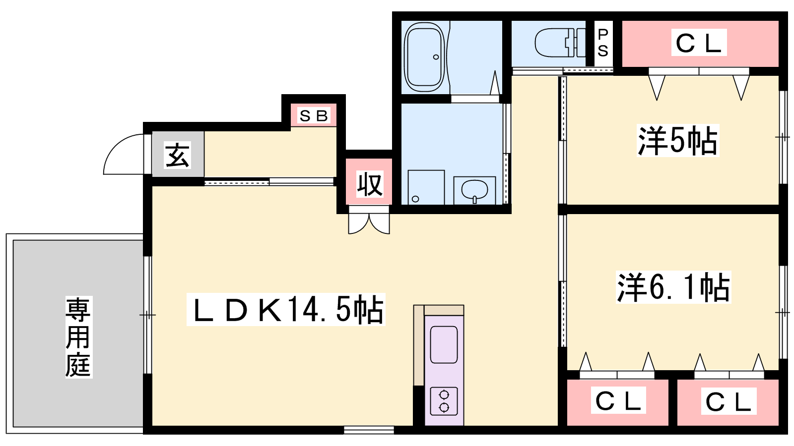 - LDK14.5帖、洋室6.1帖、洋室5帖