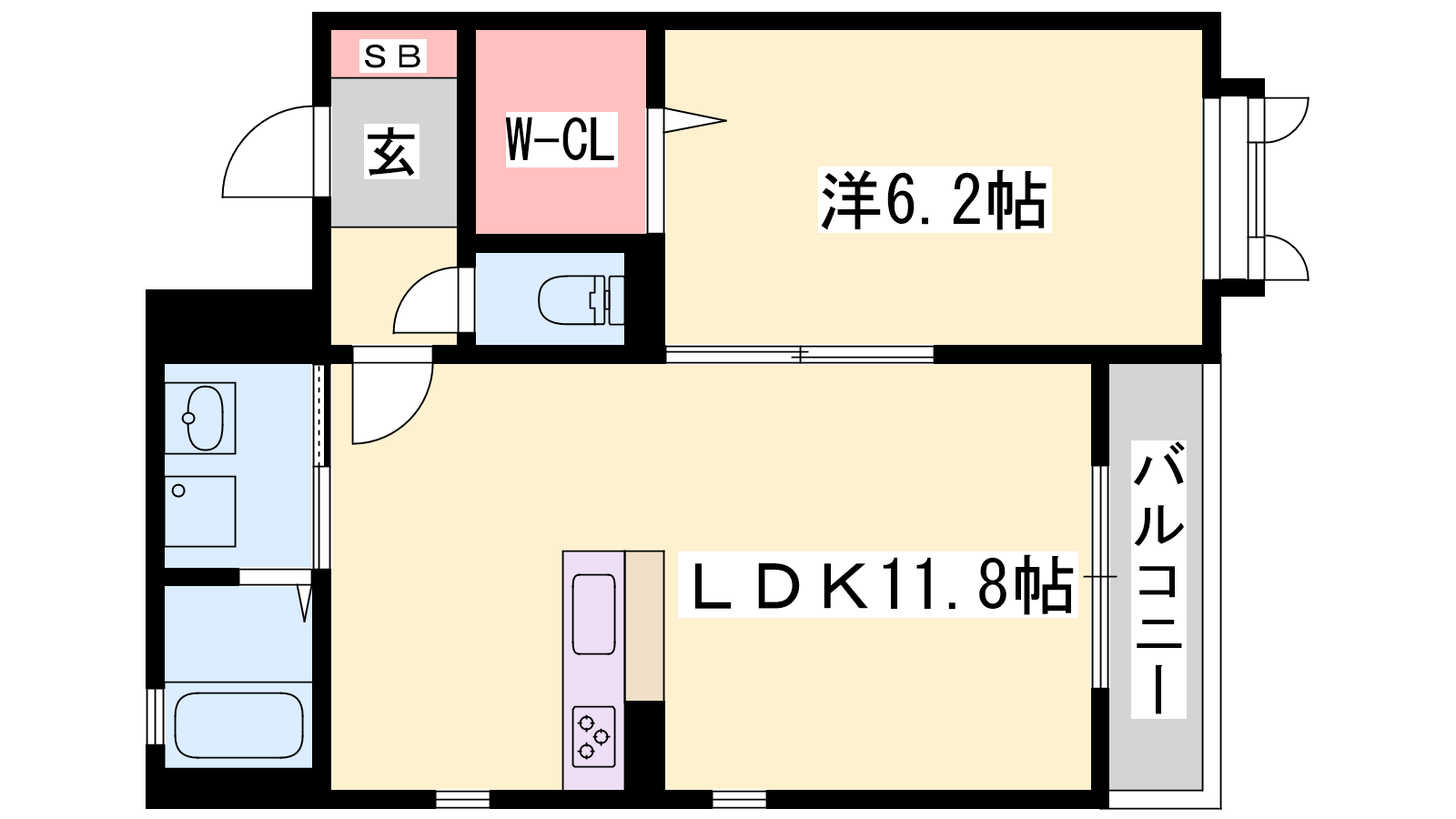 - LDK11.8帖、洋室6.2帖