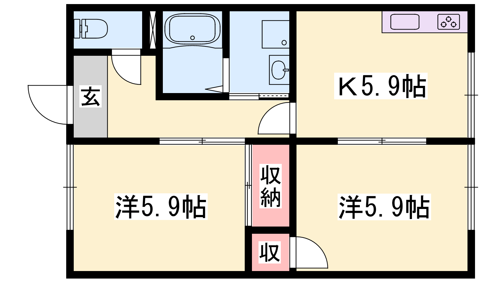 - DK5.9帖、洋室5.9帖、洋室5.9帖