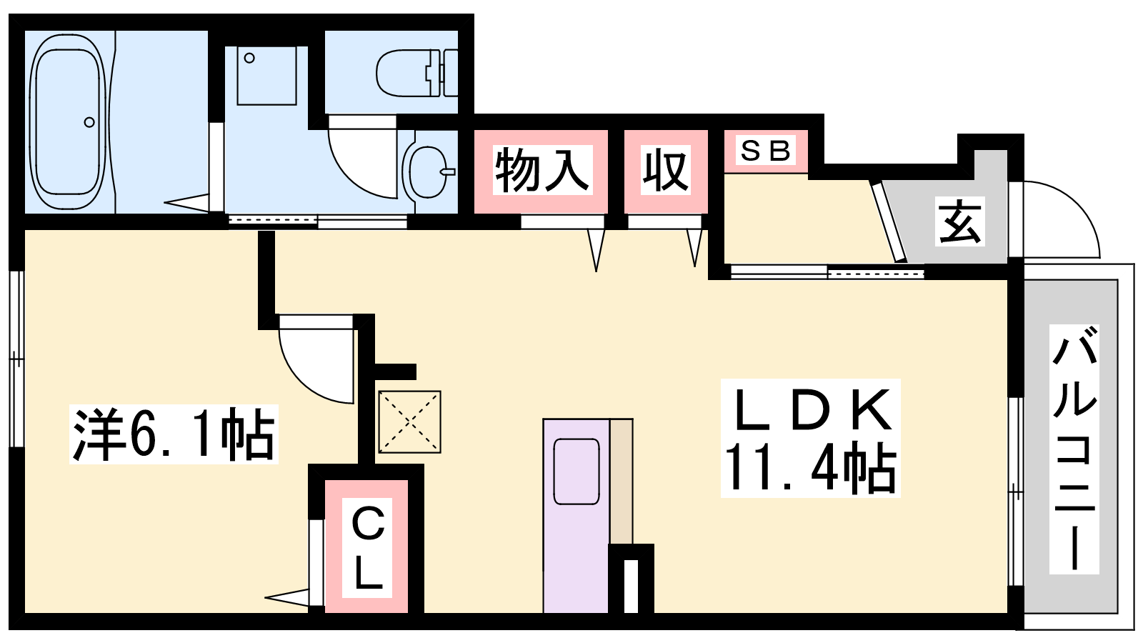 - LDK11.4帖、洋室6.1帖