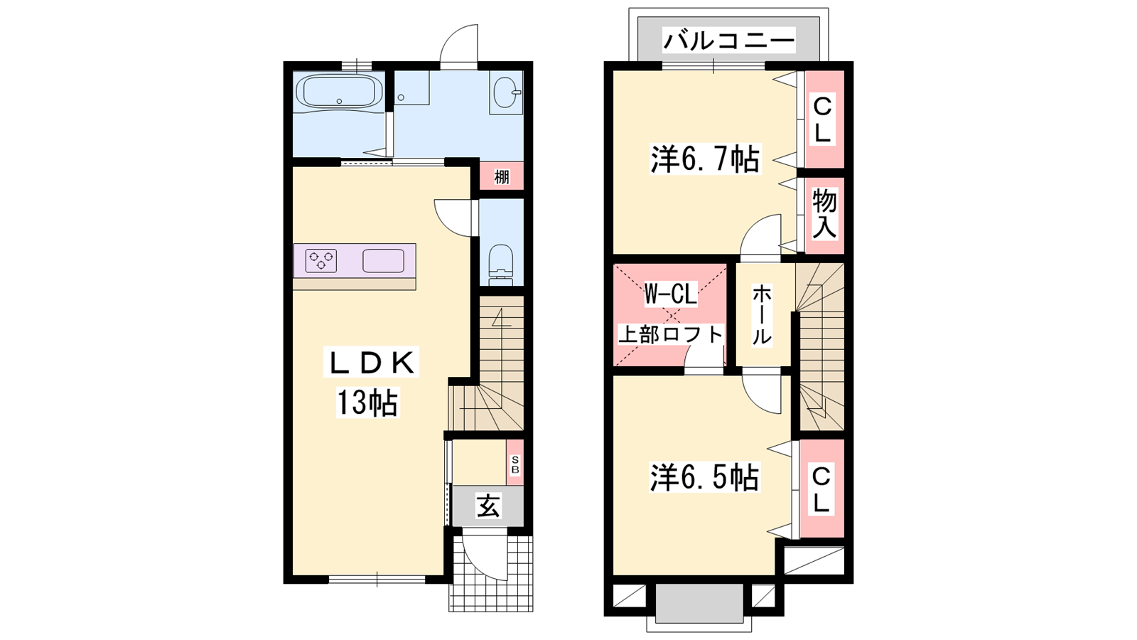 - LDK13帖、洋室6.5帖、洋室6.7帖
