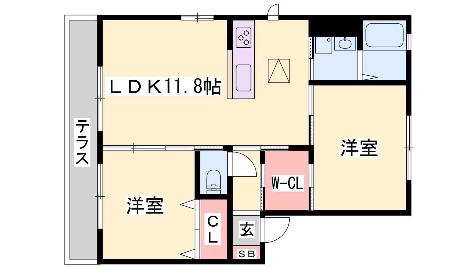 - LDK11.8帖、洋室6.9帖、洋室6.4帖