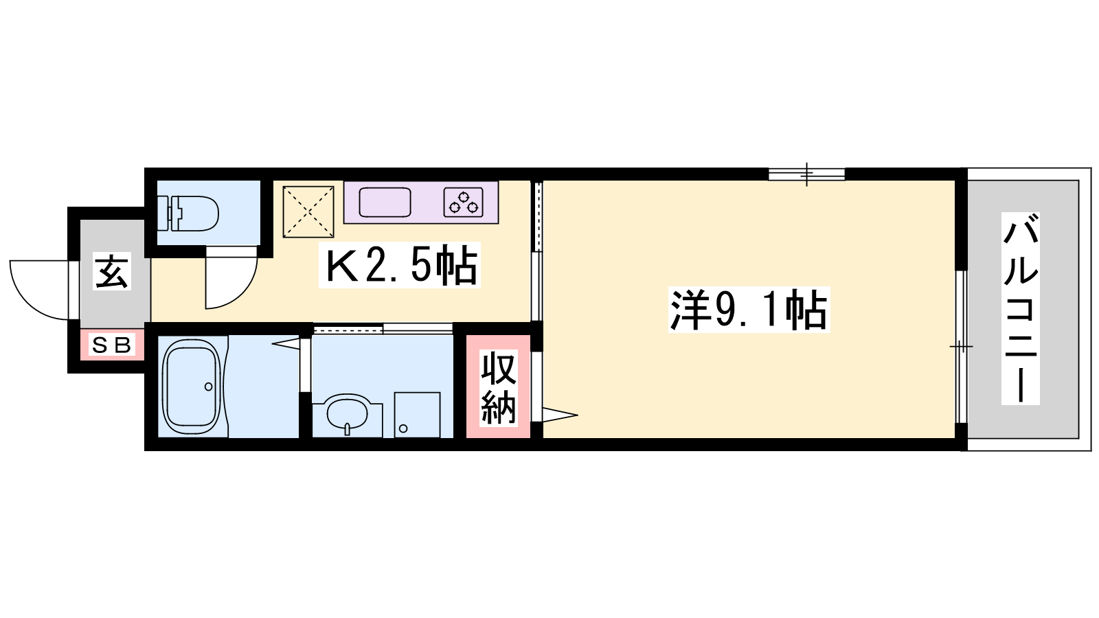 - K2.5帖、洋室9.1帖
