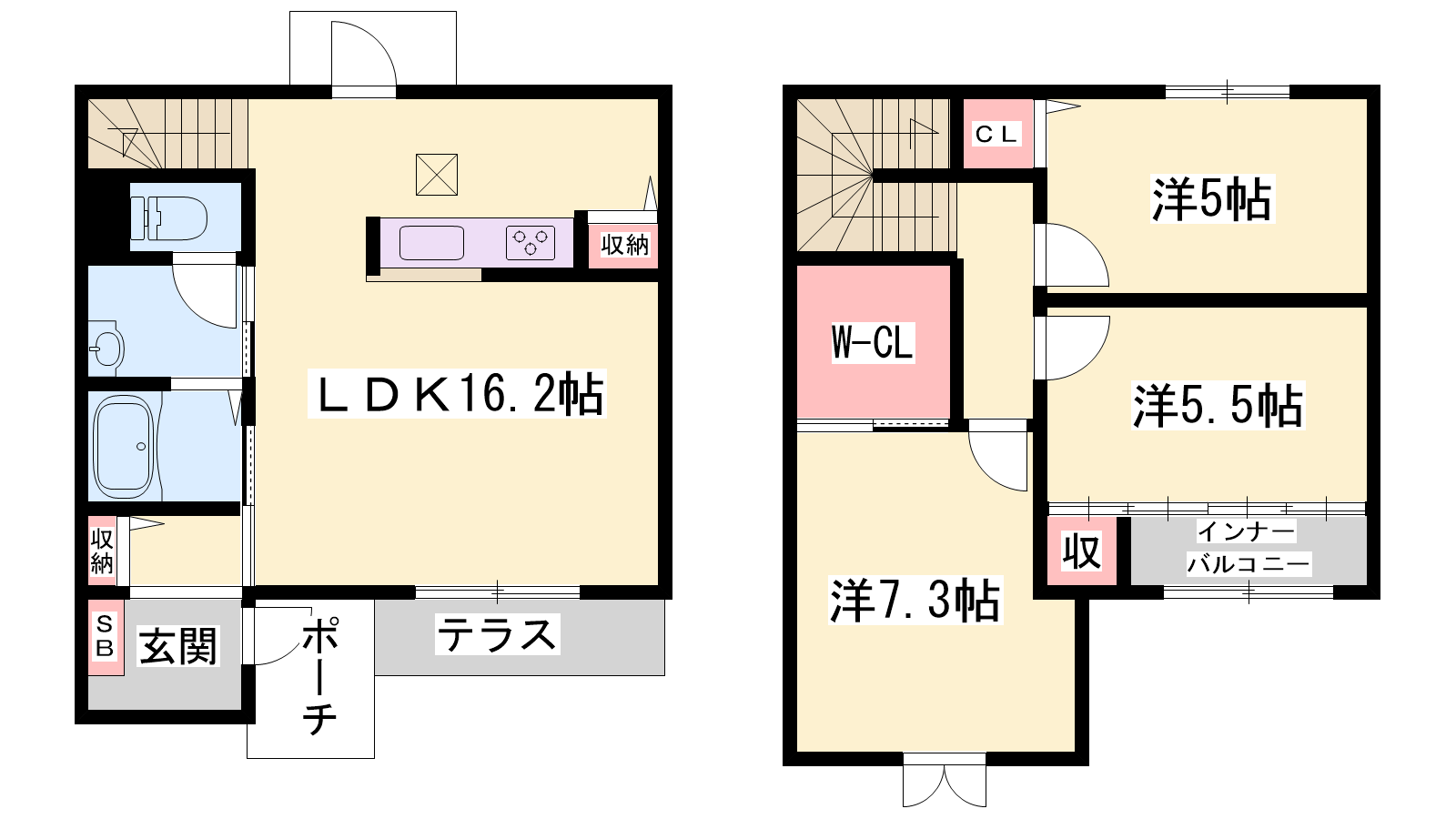 - LDK16.2帖、洋室7.3帖、洋室5.5帖、洋室5帖