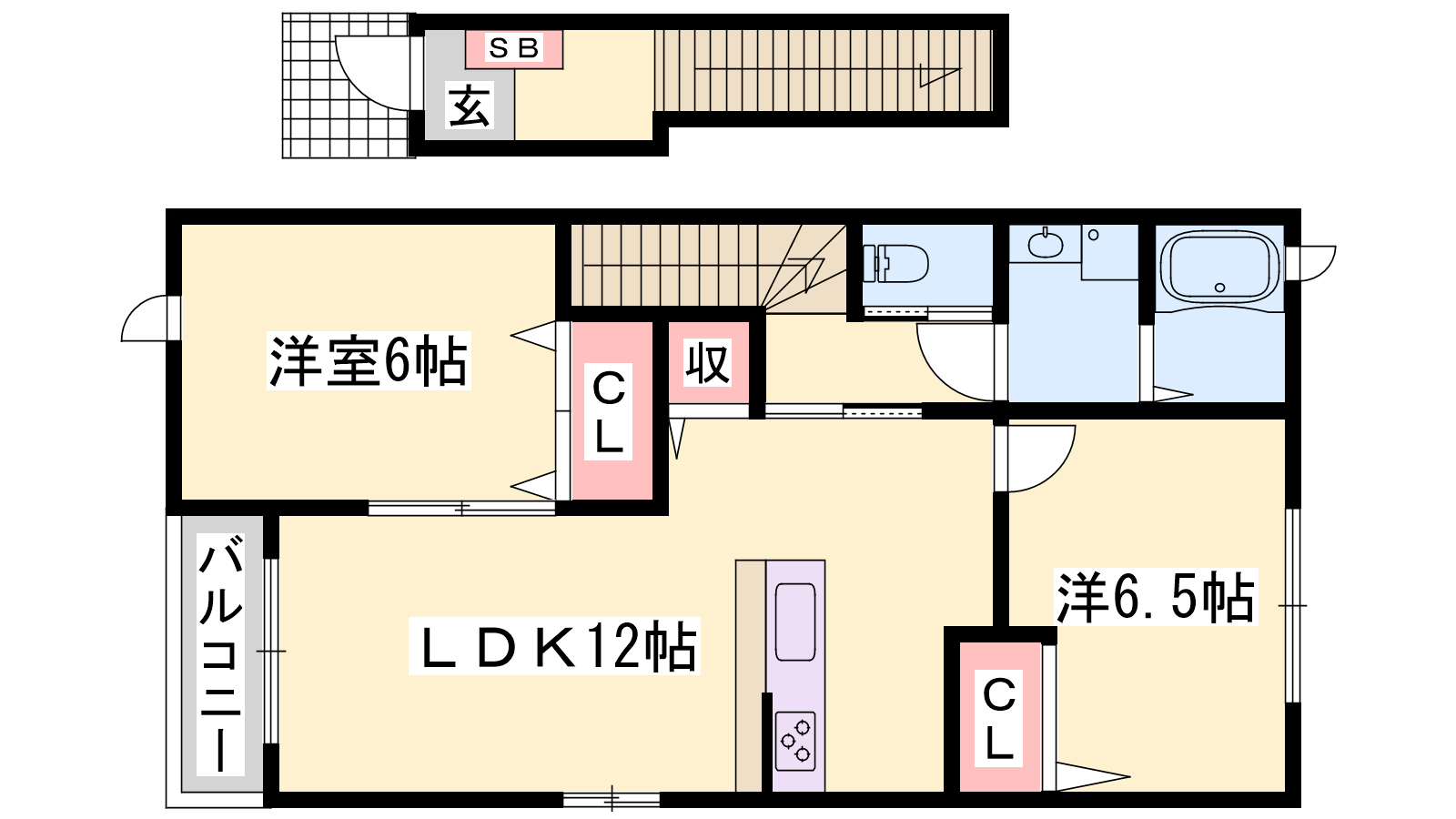 - LDK12帖、洋室6.5帖、洋室6帖
