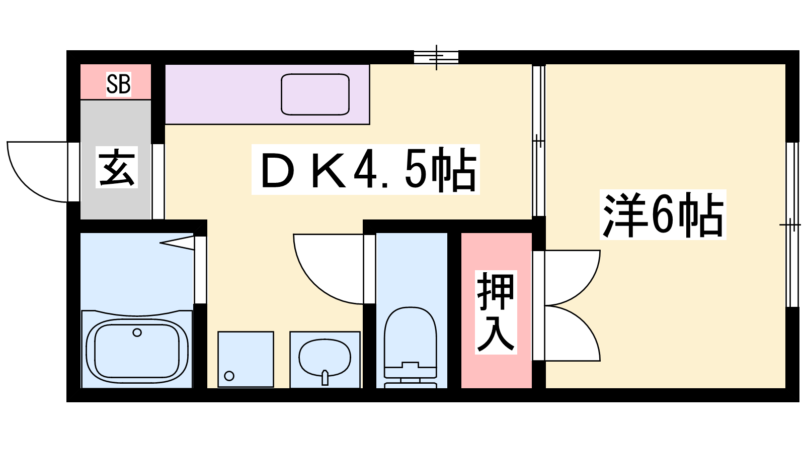 - DK4.5帖、和室6帖