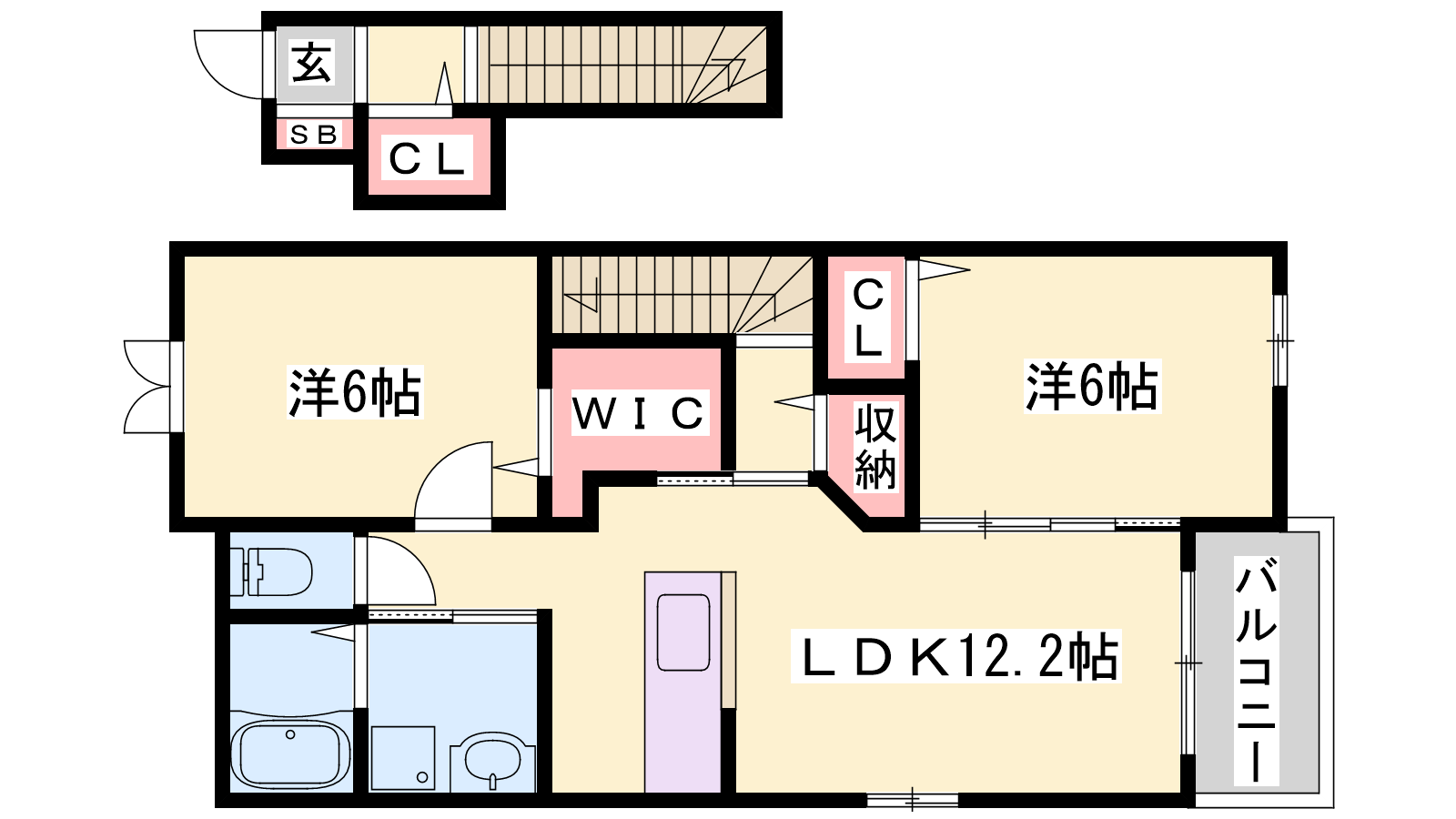 - LDK12.2帖、洋室6帖、洋室6帖
