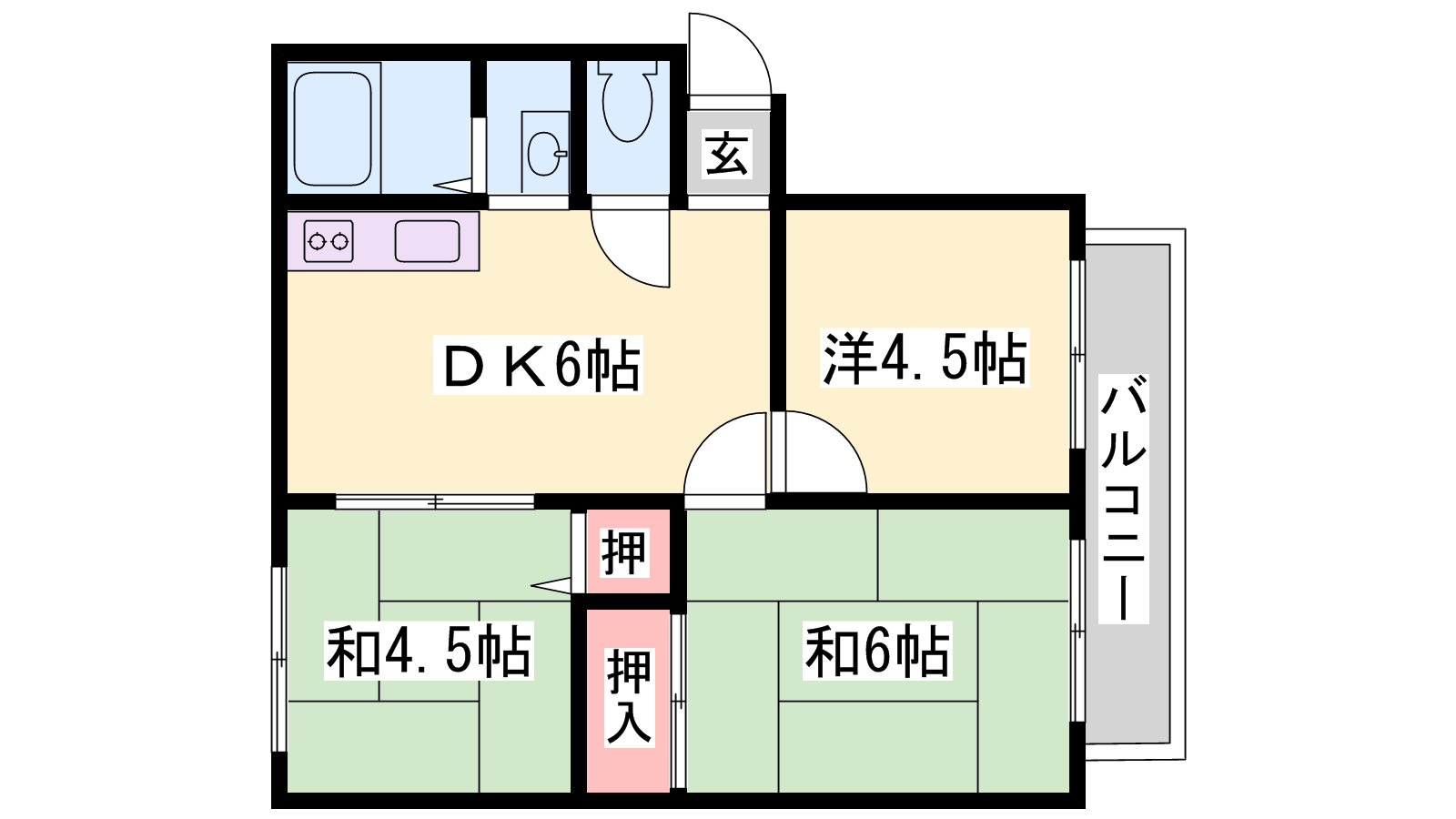 - DK6帖、和室6帖、洋室4.5帖、和室4.5帖