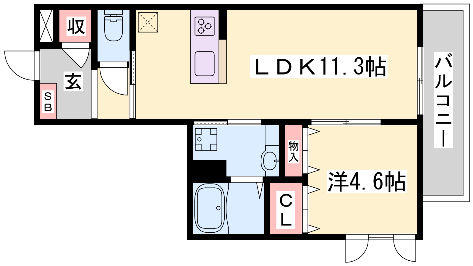 - LDK11.3帖、洋室4.6帖