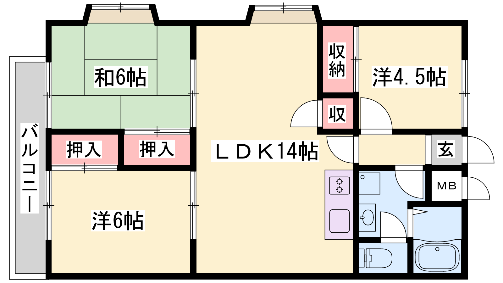 - LDK12帖、洋室6帖、洋室4.5帖、和室6帖