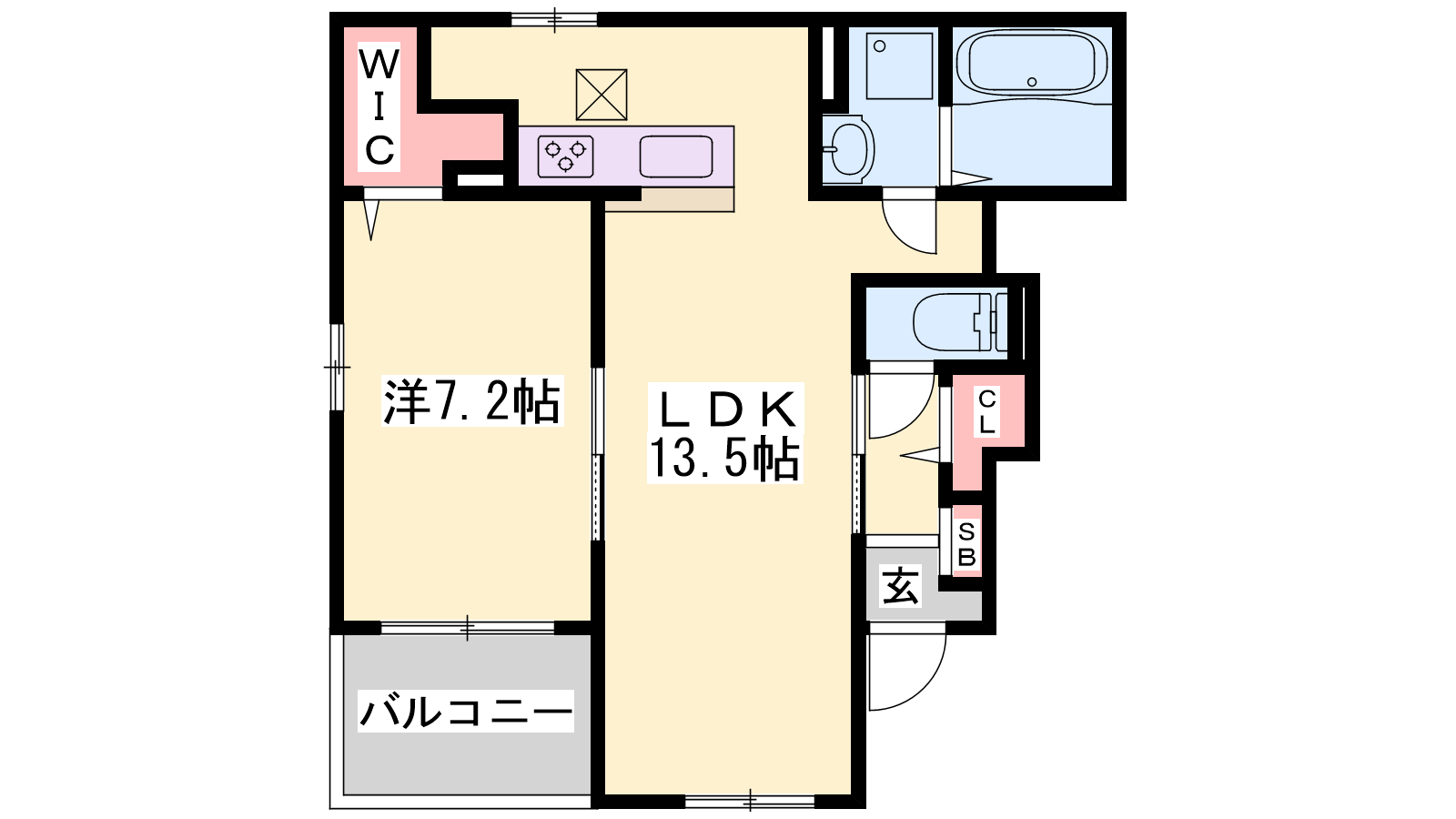- LDK13.5帖、洋室7.2帖