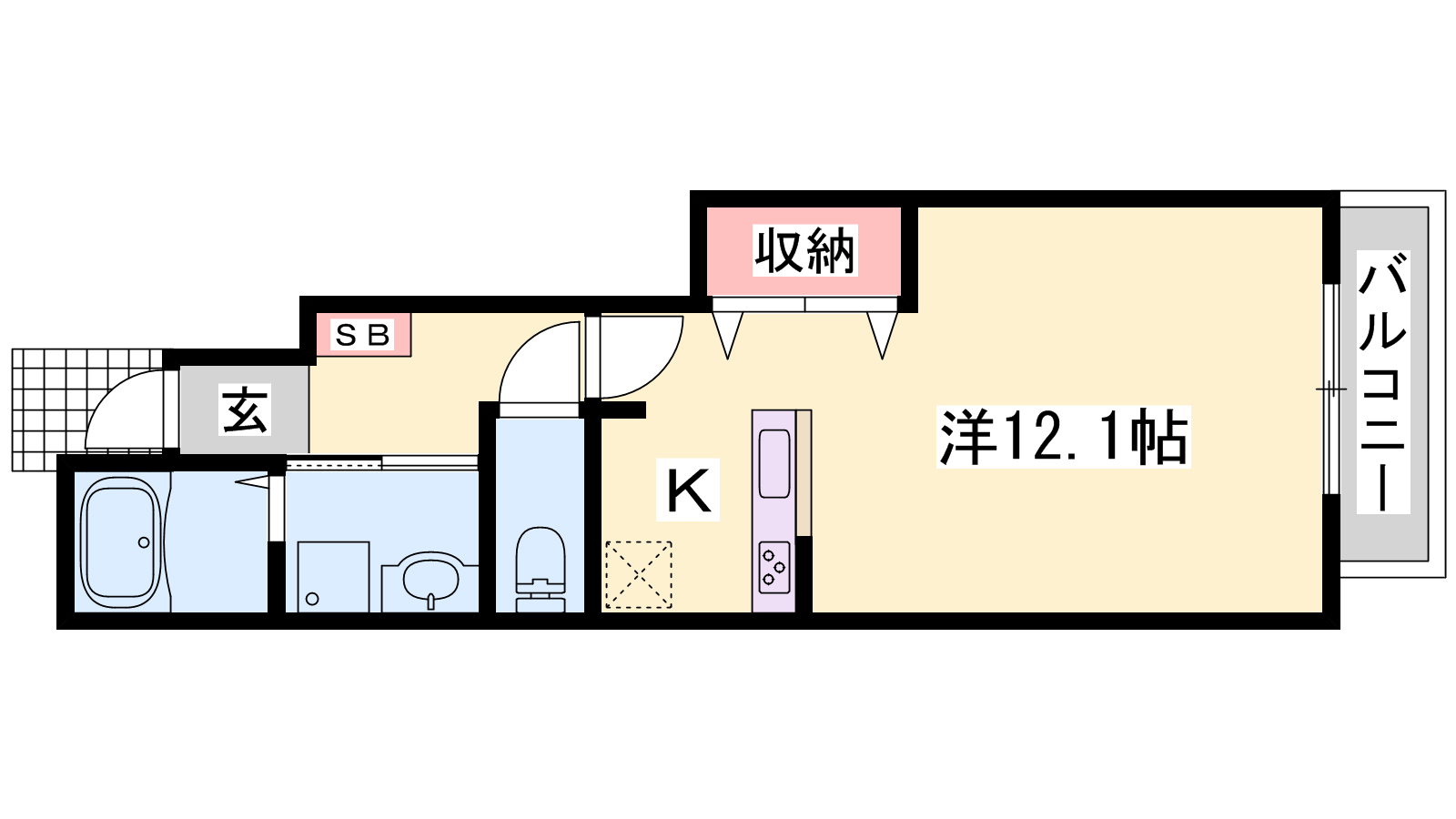 - K1帖、洋室12.1帖