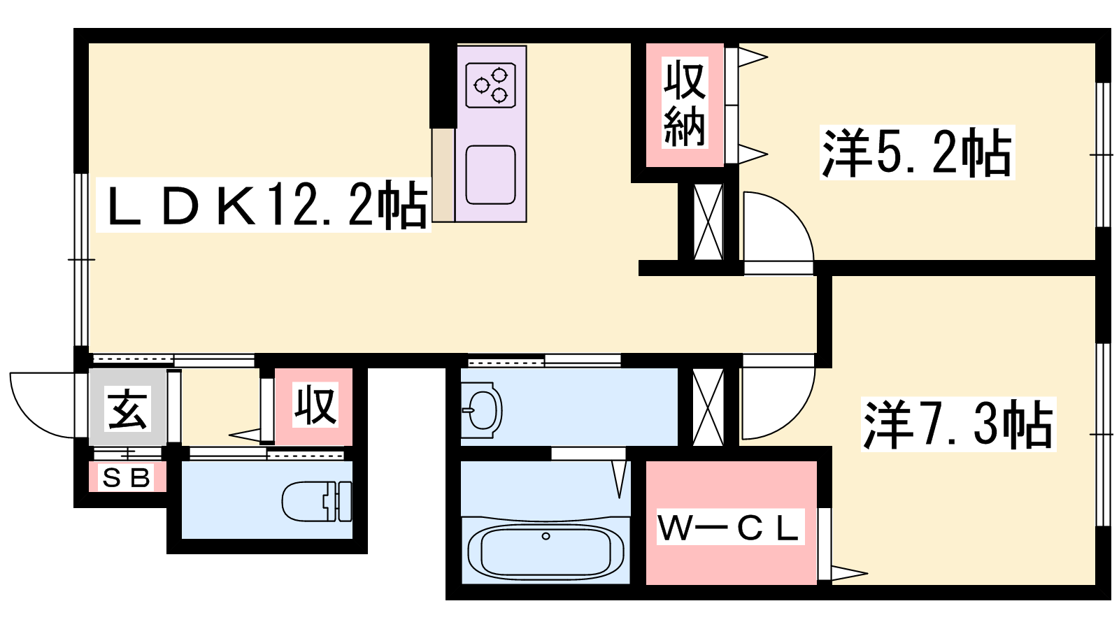 - LDK12.2帖、洋室5.2帖、洋室7.3帖