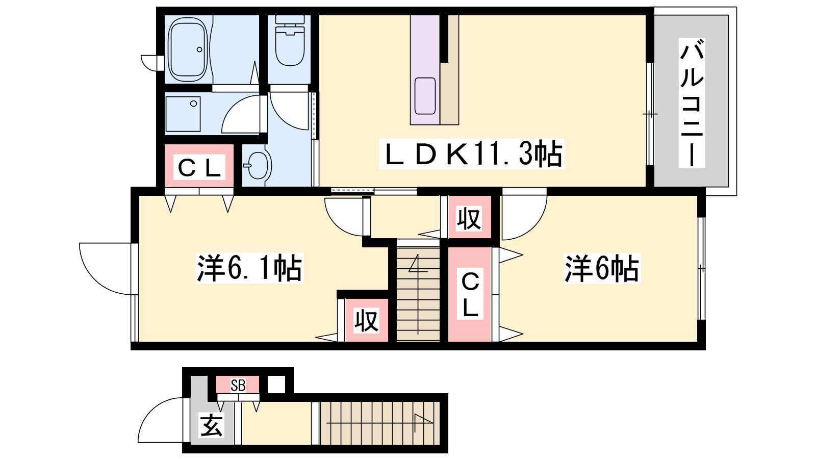 - LDK11.3帖、洋室6.1帖、洋室6帖