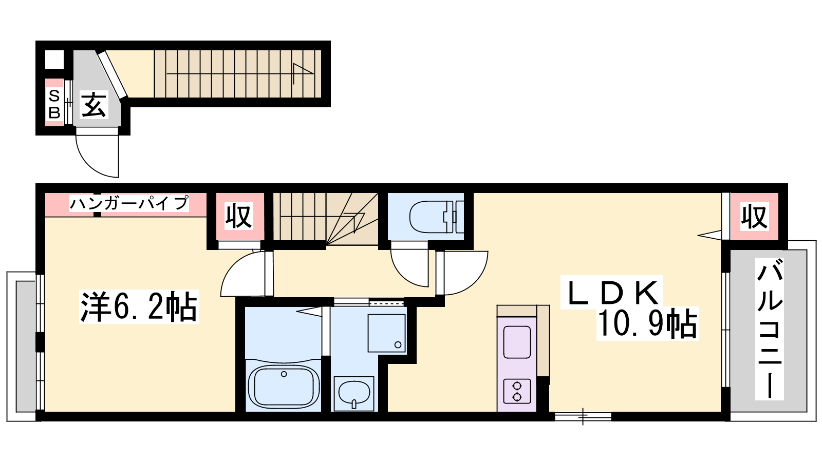 - LDK10.9帖、洋室6.2帖