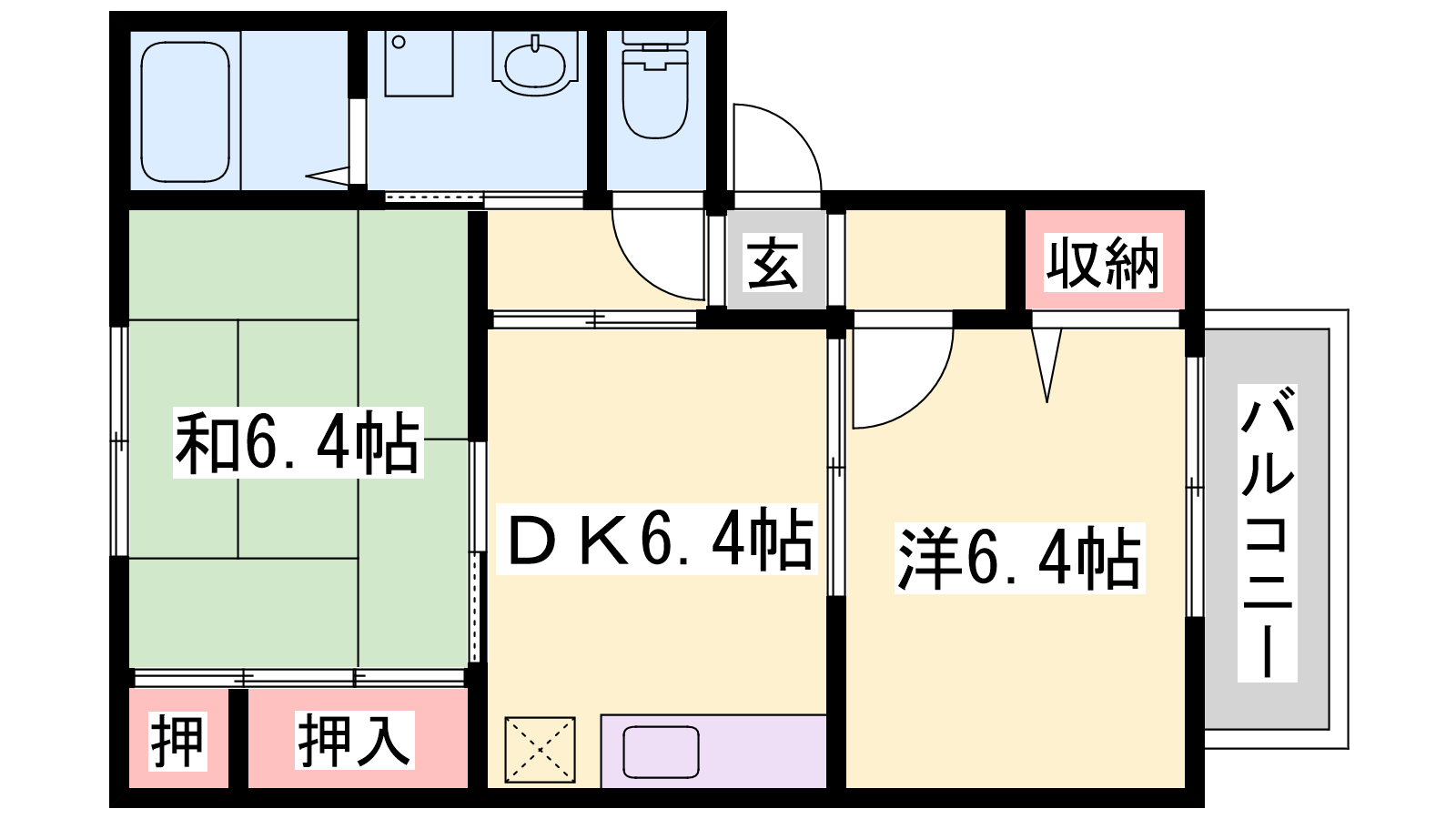 - DK6.4帖、洋室6.4帖、和室6.4帖