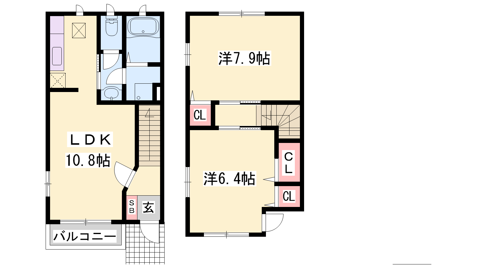 - LDK10.8帖、洋室7.9帖、洋室6.4帖