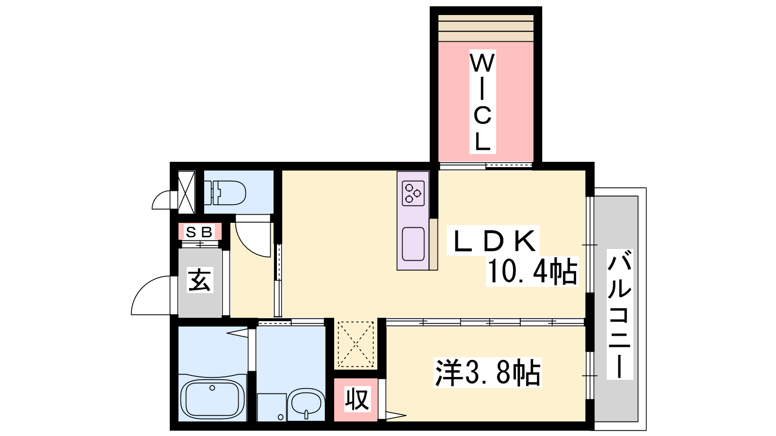 - LDK10.4帖、洋室3.8帖