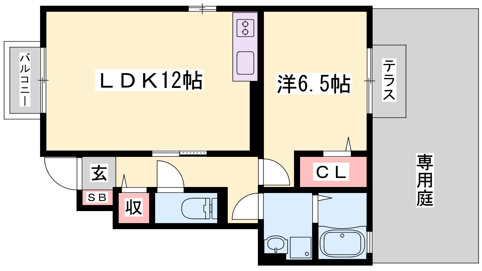 - LDK12帖、洋室6.5帖