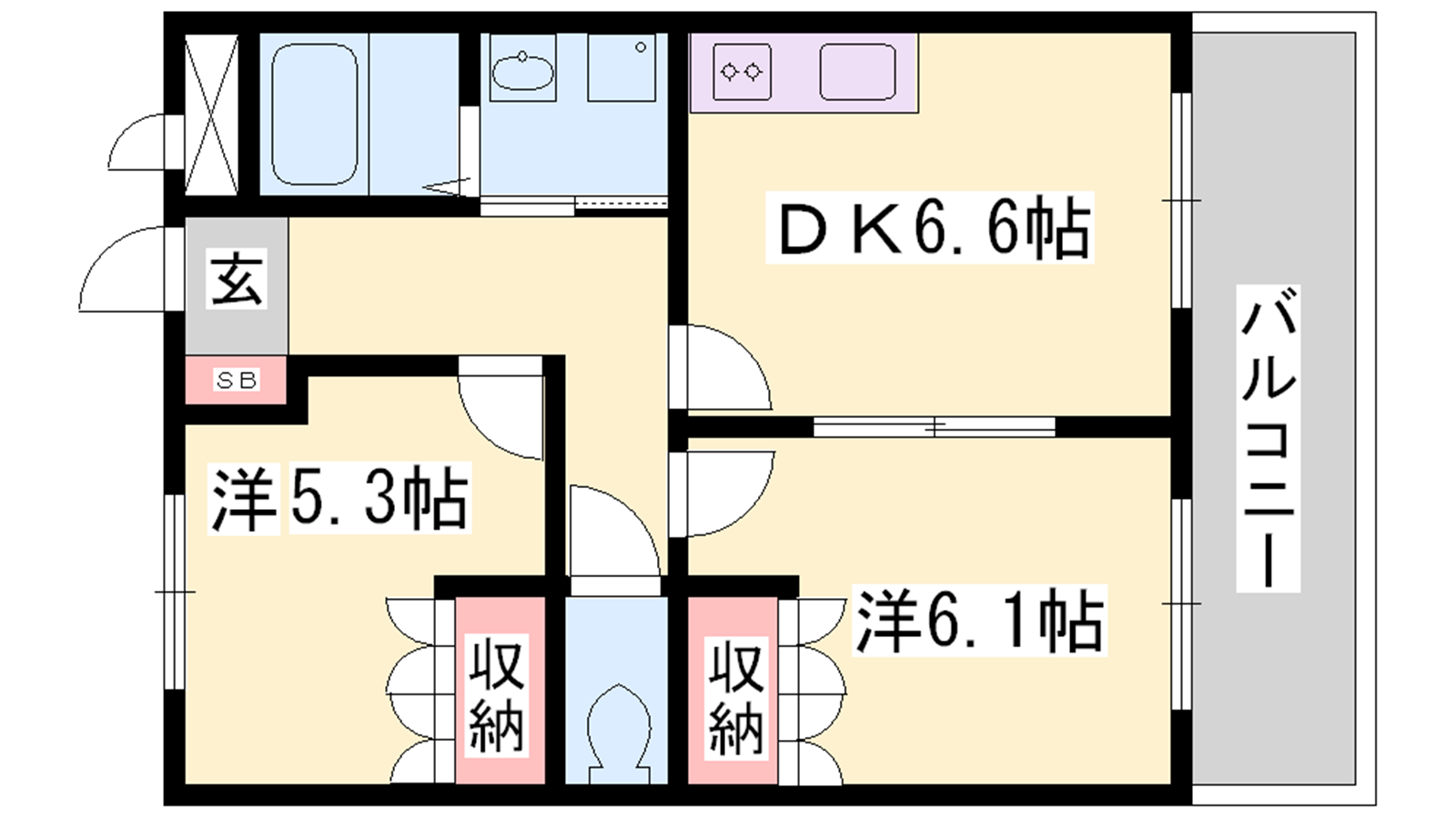 - DK6.6帖、洋室6.1帖、洋室5.3帖
