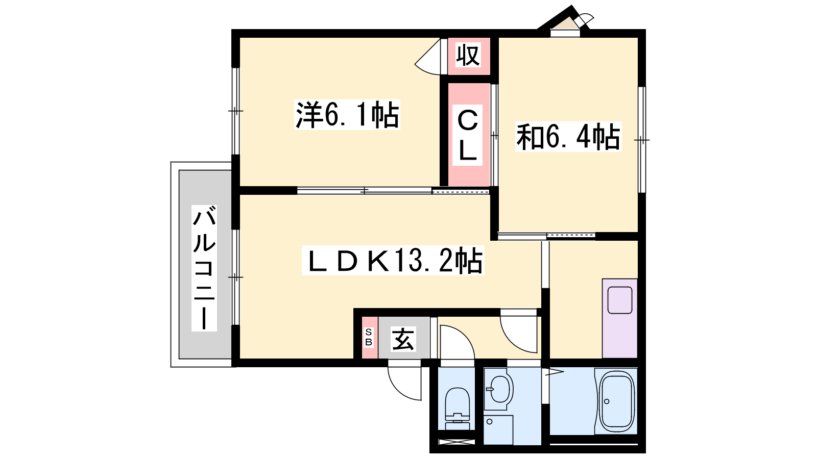 - LDK13.2帖、洋室6.4帖、洋室6.1帖